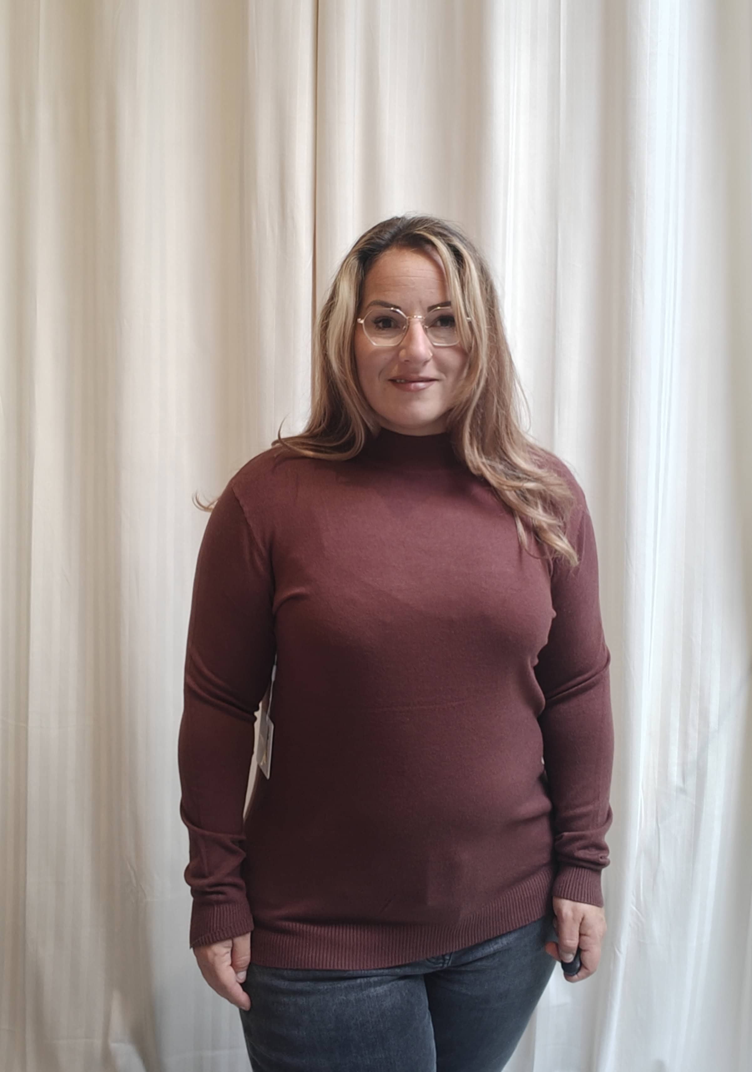 De bruine longsleeve combineert elegantie met draagcomfort. Gemaakt van hoogwaardig, ademend materiaal voelt hij zacht aan op de huid en blijft hij lang mooi. De opstaande boord geeft een subtiele, modieuze twist waardoor je deze longsleeve gemakkelijk kunt dragen naar kantoor, een etentje of een casual dagje uit.