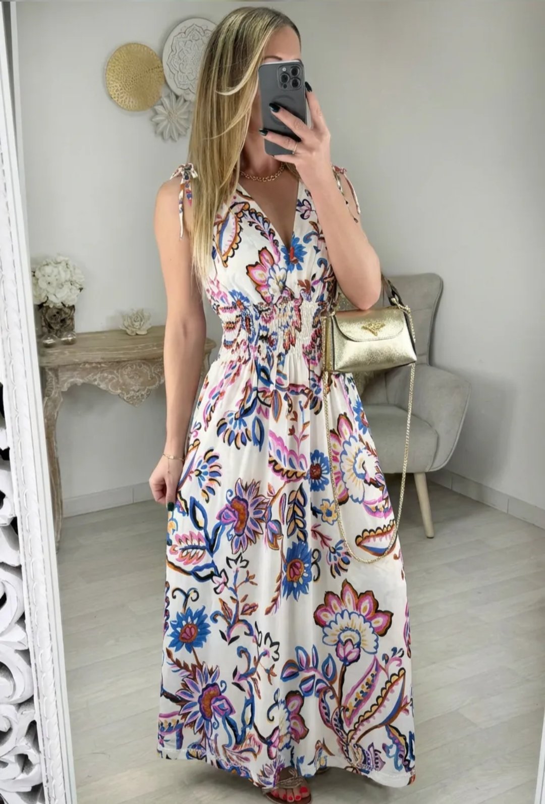 De jurk heeft een elegante v-hals, een vrouwelijke pasvorm en een luchtige, zwierige rok – perfect voor een dagje uit, vakantie of een feestje. Combineer met sandalen of hakken en je bent meteen klaar om te stralen! ✨